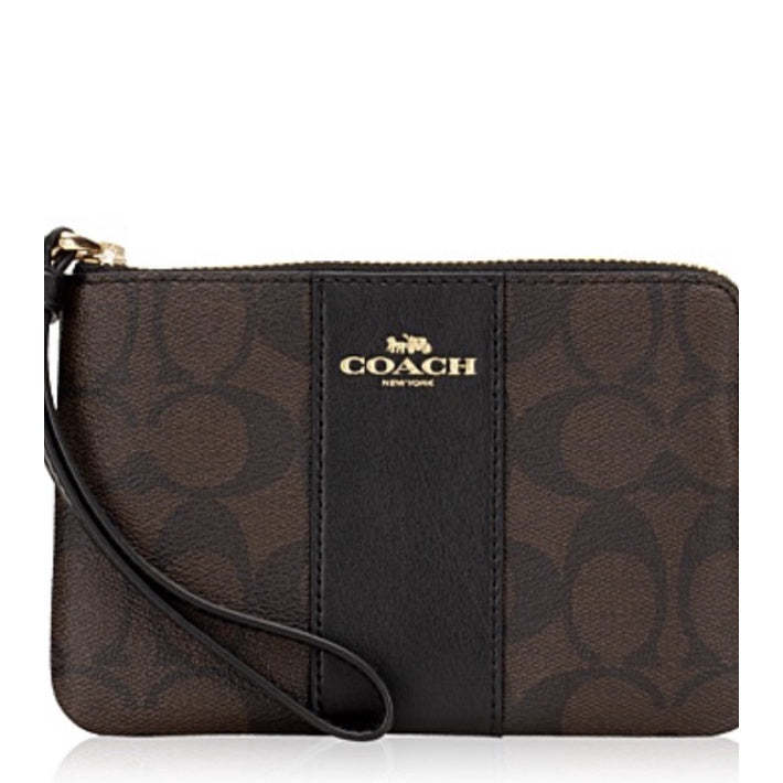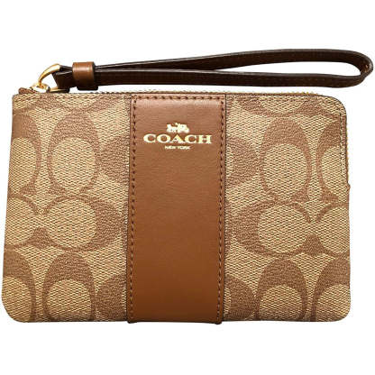 Wristlet Ladies Signature Bicolor Leather 閳?Model: SIG PVC LTH CRN ZIP Signature Pee Vee Sea Leather Corner Zip
