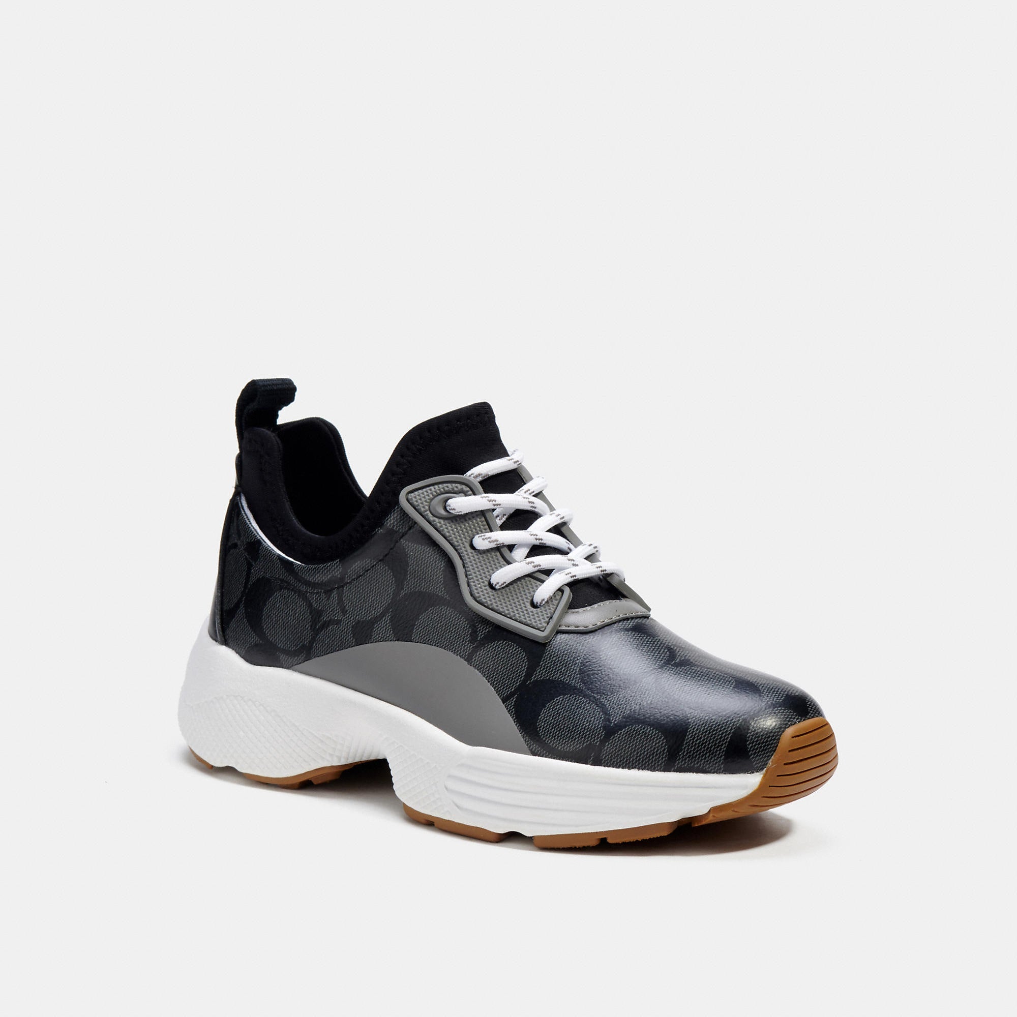 Signature coated canvas leather fabric and rubber upper Fabric and lining footbed Rubber outsole Lace-up closure Style No. C5774